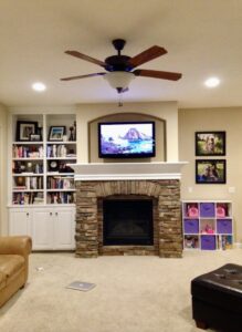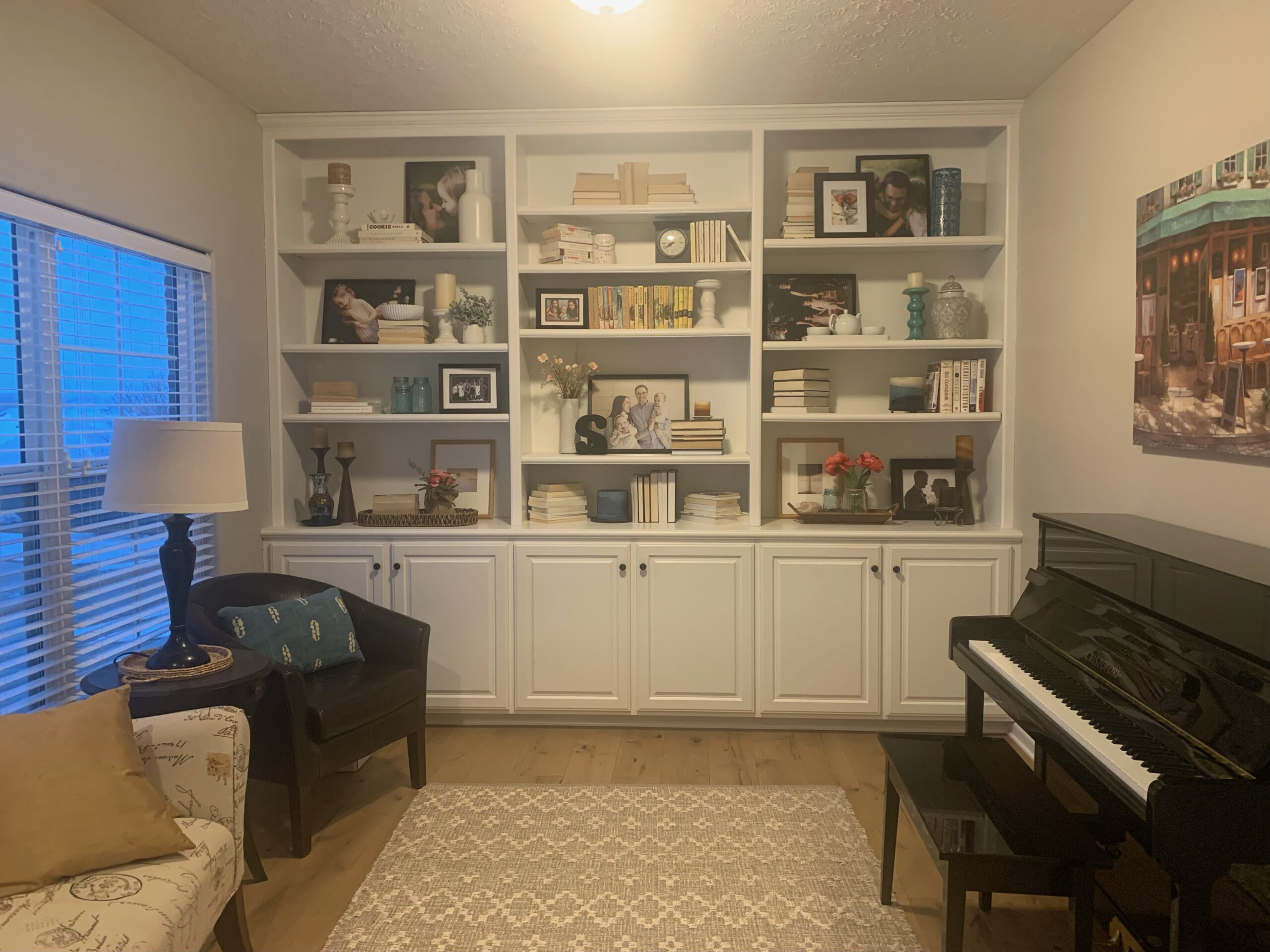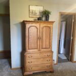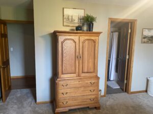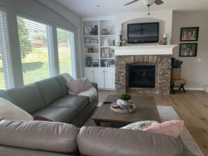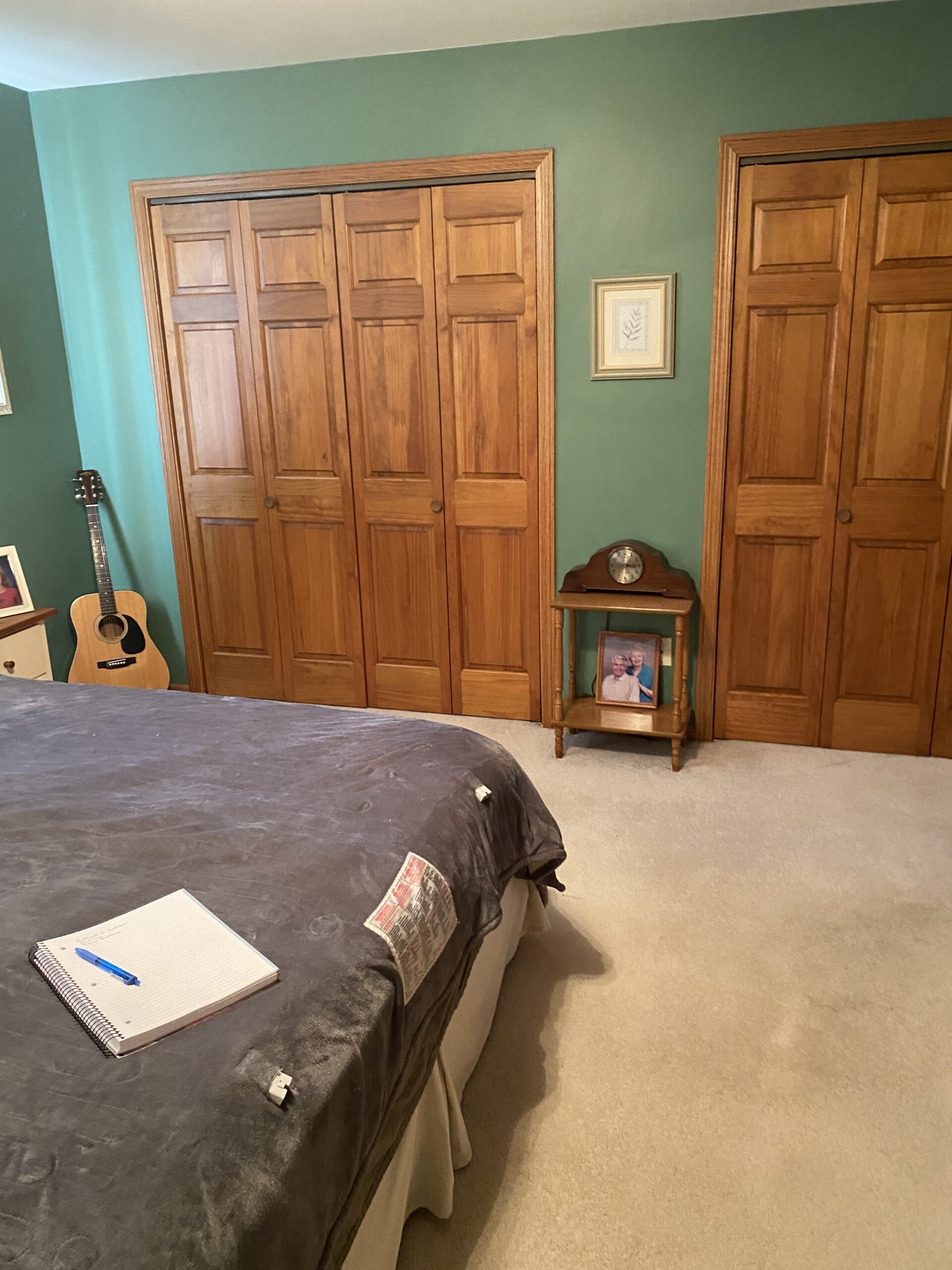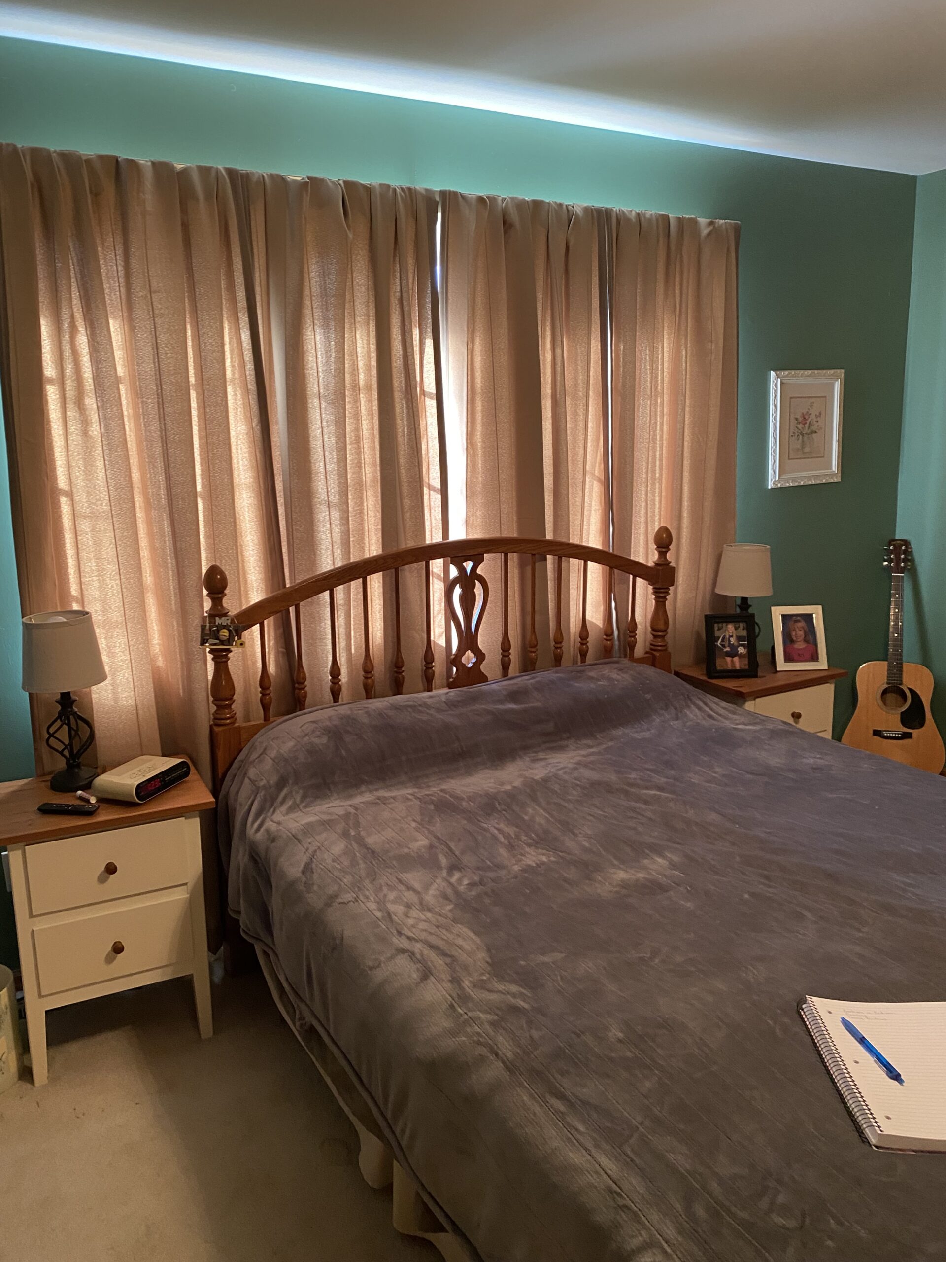This bedroom just needed a little TLC. The main furniture stayed – but new carpet, paint, window treatments, and decor is just what the space needed!