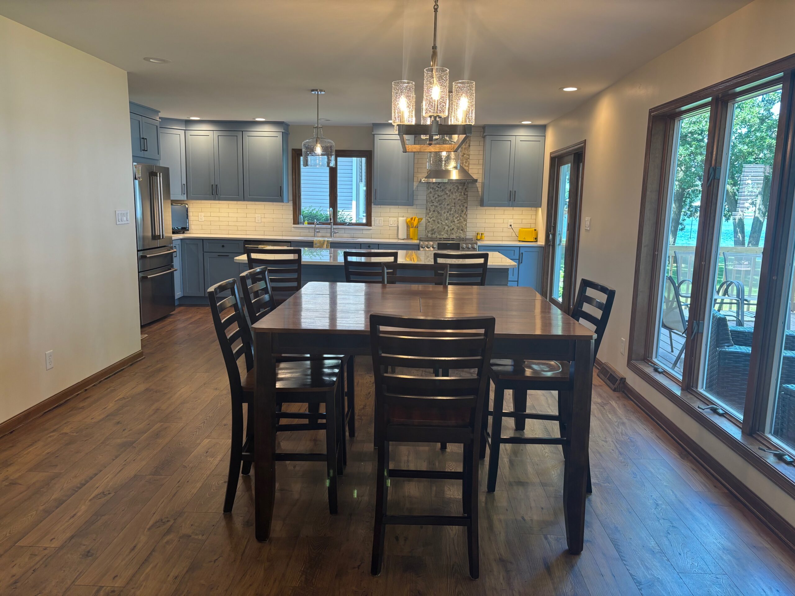 After: The wall separating the kitchen and dining room is gone, letting you see into this beautiful kitchen and massive island!